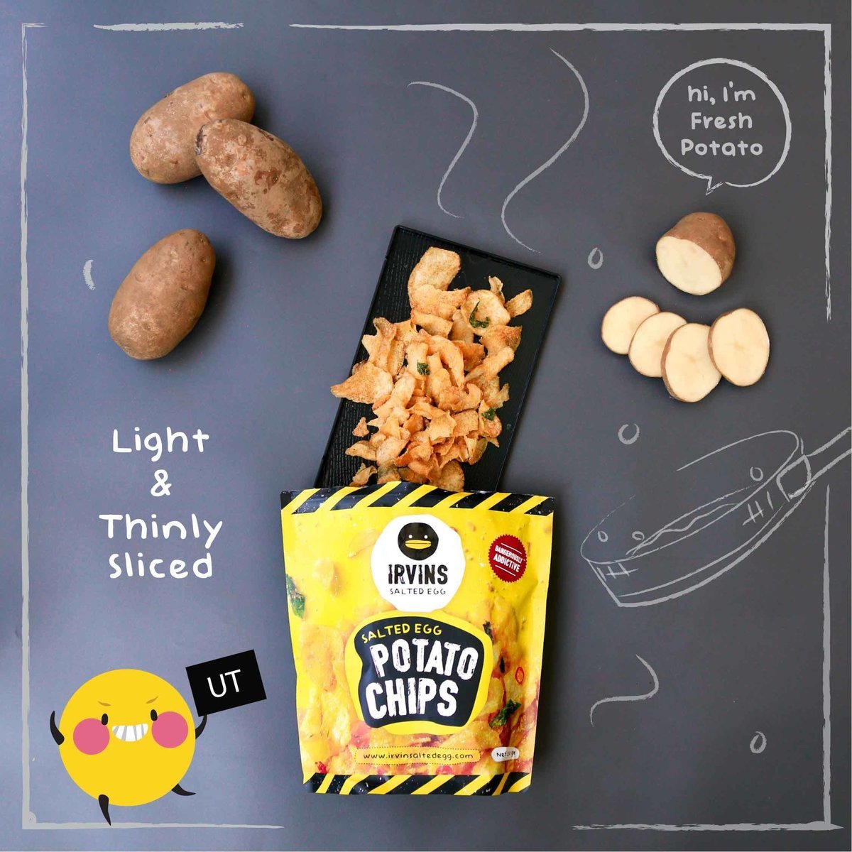 💡IRVINS Salted Egg Potato Chips are formulated by our expert chefs in Singapore. Thinly sliced potatoes are fried to a golden crisp, mixed with real salted egg yolk, aromatic curry leaves, and vibrant red chili peppers. This homestyle premium recipe creates a multi-sensory snacking experience that will leave you wanting more.